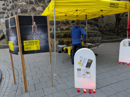 Anlässlich des internationalen Tages gegen die Todesstrafe am 10. Oktober haben wir uns an einer Mahnwache des Bezirks Bonn-Koblenz von Amnesty International in der Bonner Innenstadt beteiligt.